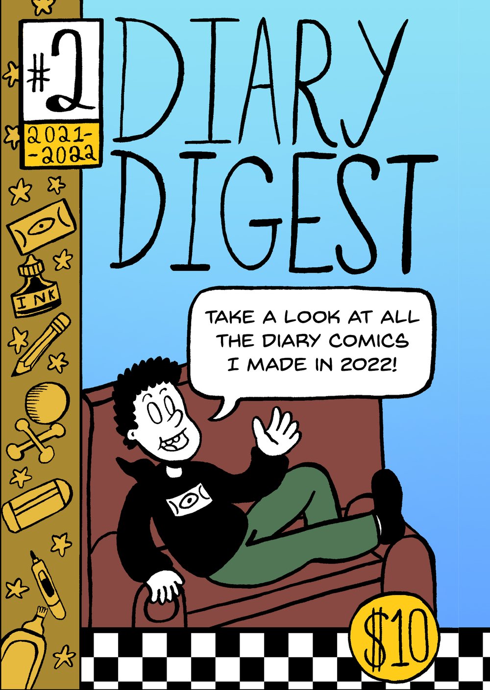 This book contains every Diary comic from 2021 to 2022! The book itself is 40 pages long and stands at a quaint 5.5 x 8.5 inches. It also comes with an exclusive sticker! Ain't that something!