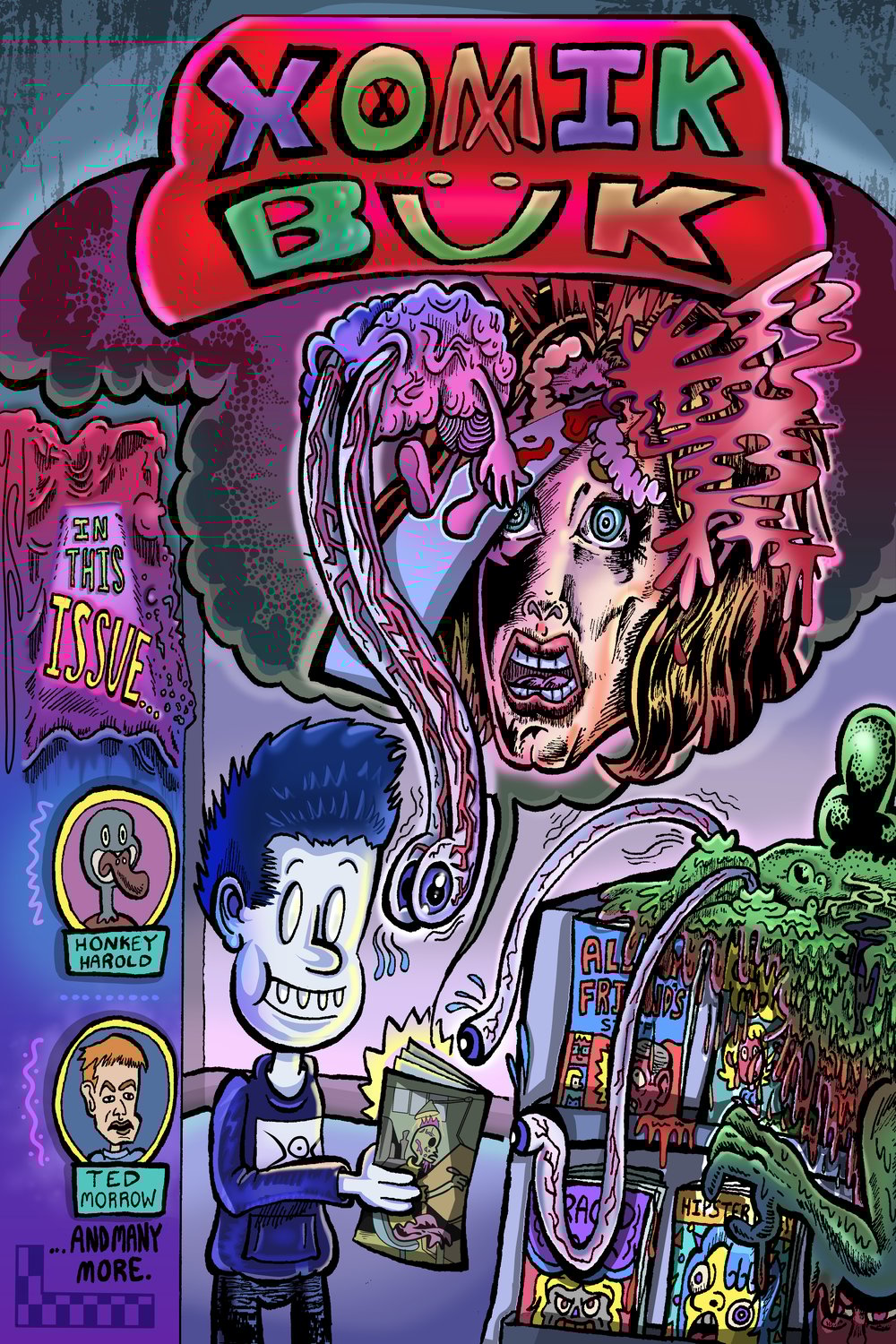Xomik Bük is 120 pages long and includes the widest array of comics any book has ever featured ever! Horror, comedy, action, adventure, drama, diary, existential, sci-fi, this book's got it all! Heck, it's even got some green dude!